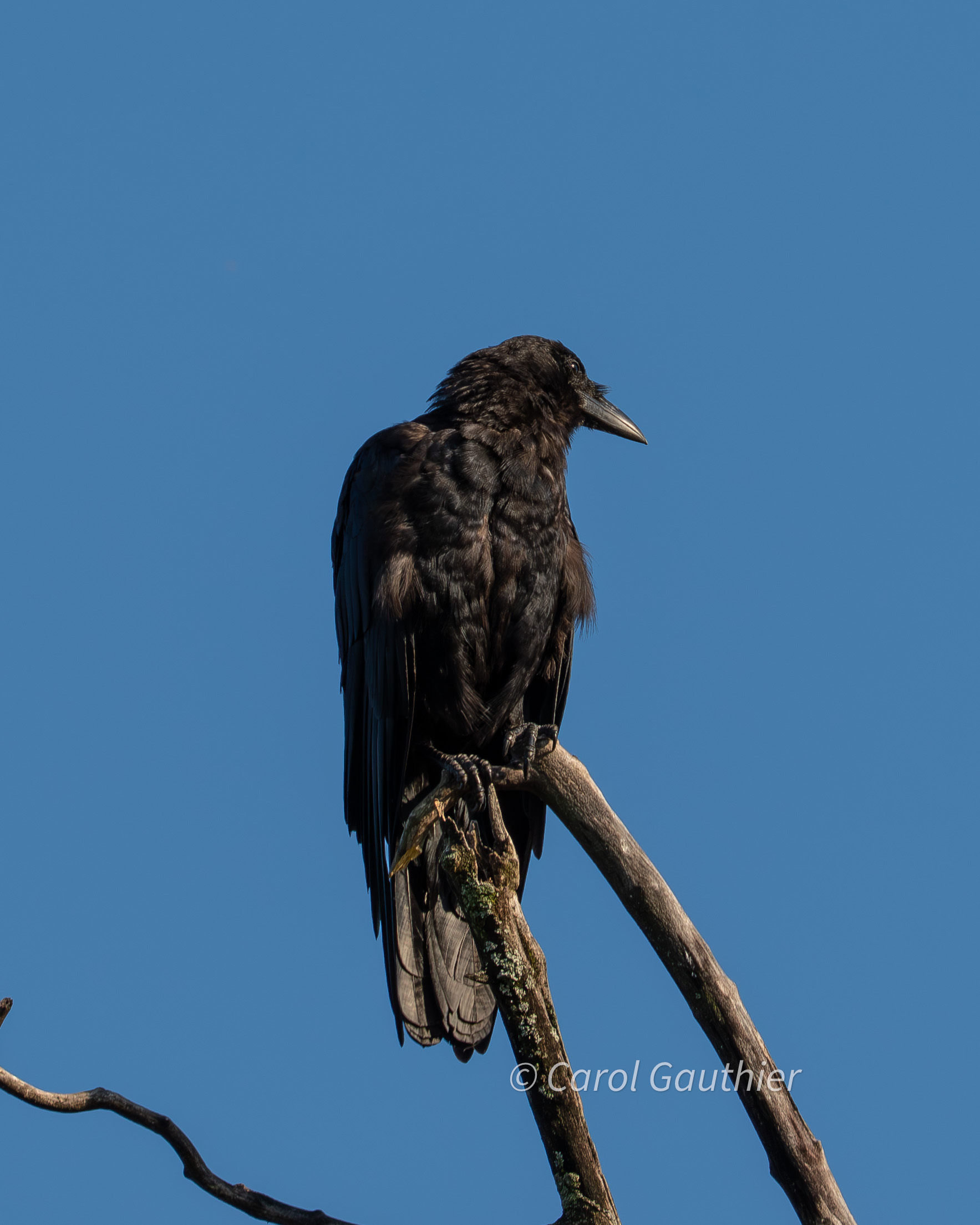 A crow perched in Sherbrooke, Quebec, Canada.