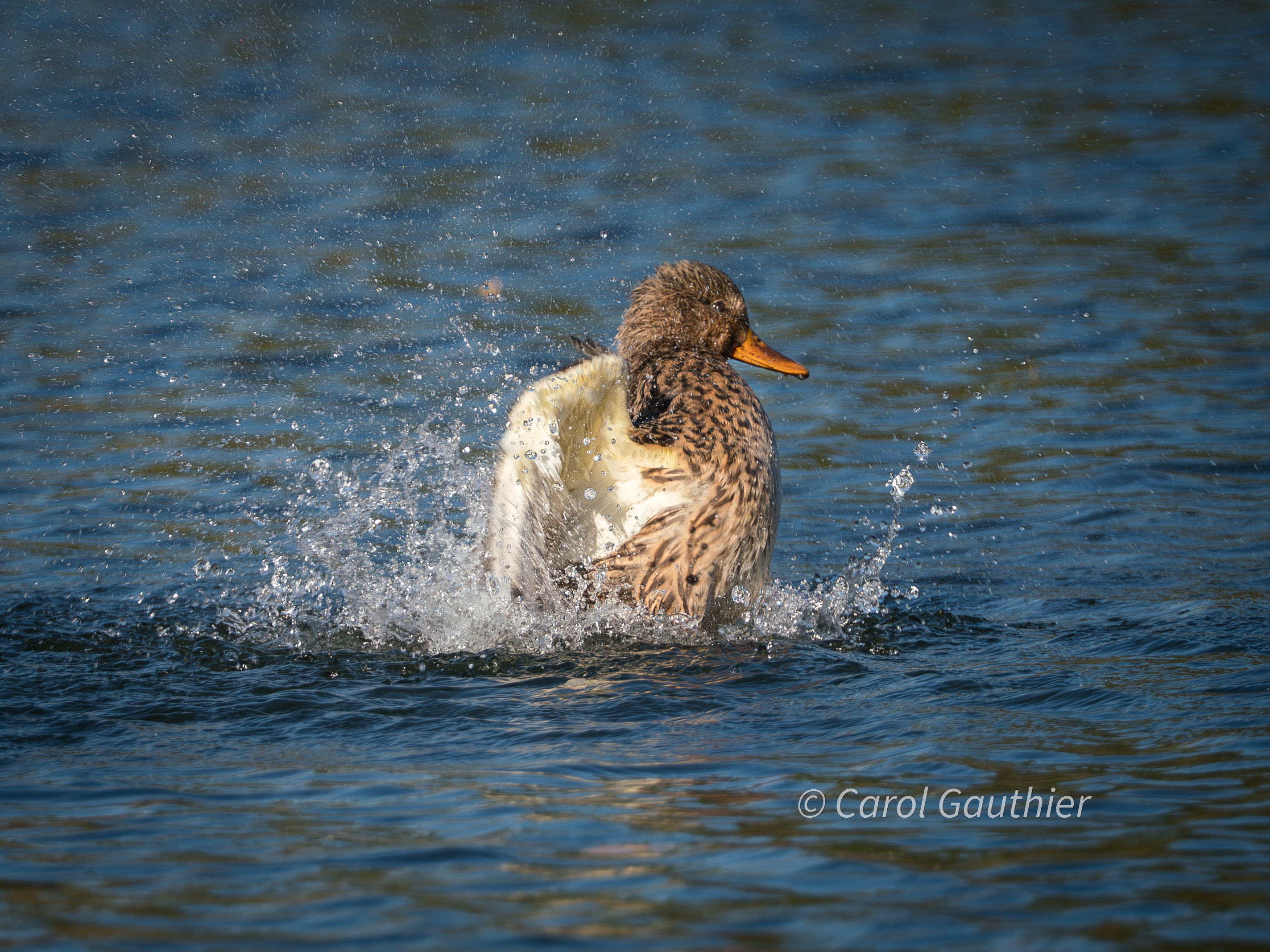 Female Mallard Duck Showering under the sun